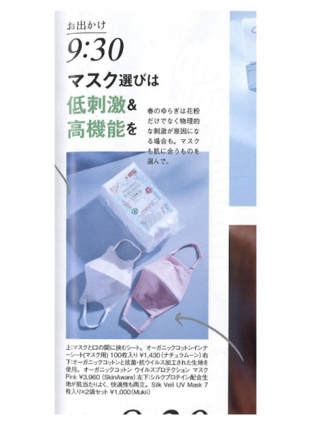 雑誌「美ST3月号」に オーガニックコットンインナーシート(マスク用)が掲載されました。